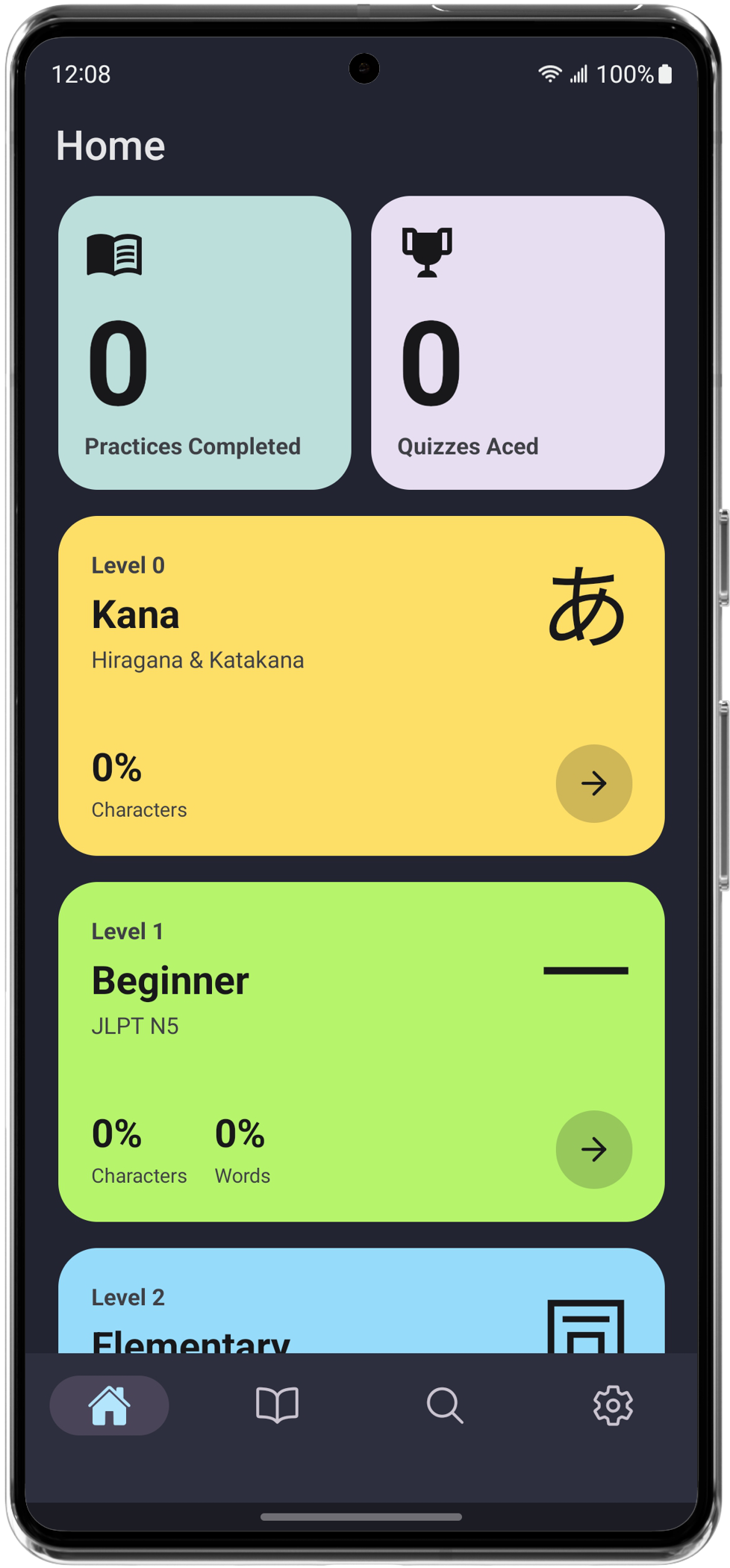 Nihonfren is your friendly Japanese language learning companion, designed to help you master hiragana, katakana, kanji, and vocabulary for JLPT preparation from N5 to N1.